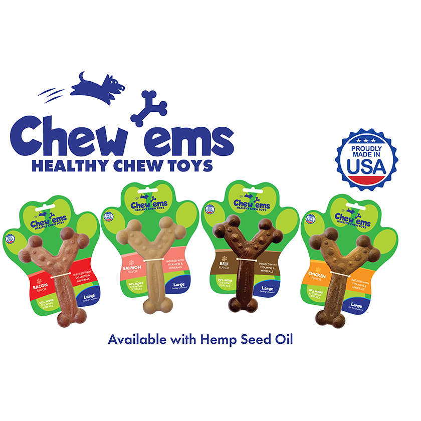Chew’ems redefines a category that has not been changed in decades. Our bones are engineered to be a safe, healthy and enjoyable chew. Using innovative infusion technology, we are able to saturate the bone with vitamins and minerals essential to a pet’s health.